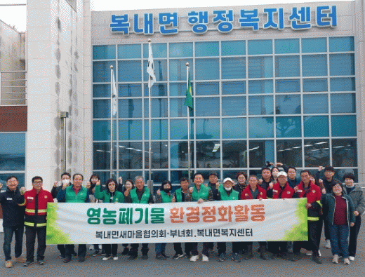 이날 환경 정화 활동은 복내면 새마을부녀회, 새마을지도자회, 복내면 행정복지센터 직원 등 20여 명이 모여 함께했으며, 농로와 배수로 주변에 방치된 폐비닐을 집중 수거하고 주민들에게 쓰레기 불법 투기 방지 등 올바른 분리배출 방법을 홍보했다.