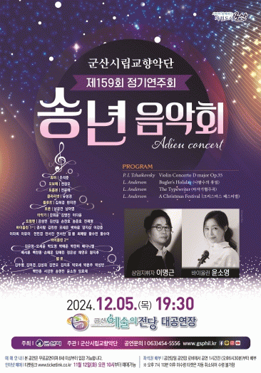 군산예술의전당 홍양숙 과장은 “이번 송년음악회는 군산시립교향악단과 시민연주자들이 한마음으로 준비한 무대.”라며, “공연을 통해 한 해를 잘 마무리하고, 새해를 향한 설렘과 기대를 안고 가는 소중한 시간이 되길 바란다.”라고 전했다.