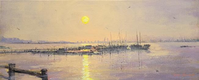 이번 전시회 작품은 30점으로, 붉은 노을의 가톨릭 목포성지와 서산동 노을, 온금동의 봄, 목포항 저멀리는 등 목포의 삶과 역사, 그리고 어둠이 짙은 목포가 아닌 노을 속을 흥겹게 춤을 추며 희망이 차오르는 목포의 기쁨을 화폭에 담았다.