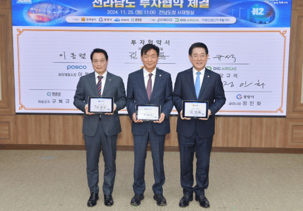 협약에 따라 디아이지에어가스㈜는 오는 2026년까지 여수국가산단에 2천42억 원을 투자해 연간 수소 6천 톤 및 액화탄산 16만 톤 규모 생산설비를 구축하게 된다.
