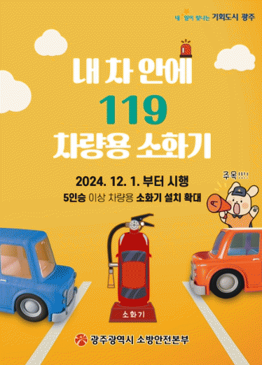 김문용 광주소방안전본부장은 “차량용소화기는 자동차 화재의 신속한 진압으로 시민의 소중한 인명과 재산을 지킬 수 있다”며 “개정 법령 시행으로 보다 안전한 자동차 환경이 조성되길 기대한다”고 말했다.