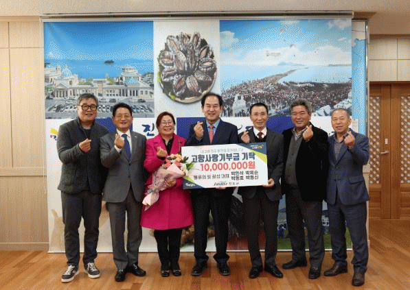 김희수 진도군수는 “고향에 대한 깊은 애향심을 가지고 기부해 주심에 매우 감사드리며, 기부금은 군민 복리증진을 위해 사용하겠다”라며 감사의 말을 전했다.