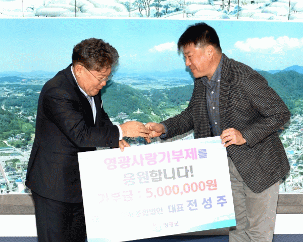 이에 영광군수 장세일은 “영광을 사랑하는 따뜻한 마음에 깊이 감사드리며 소중한 기부금은 사회적 취약계층 지원과 영광군 발전을 위해 잘 사용하겠다”라고 말했다.