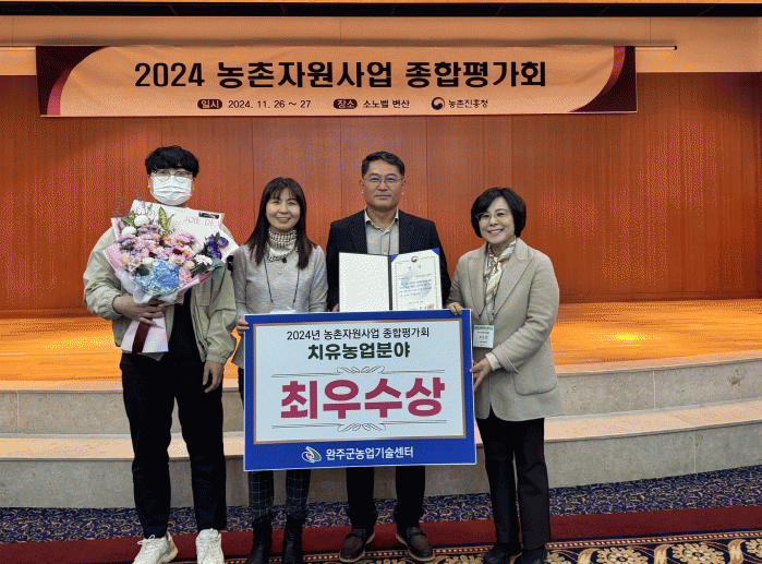 유희태 완주군수는 “치유농업 활성화에 대한 완주군의 노력이 인정받아 기쁘다”며 “내년에는 역량 강화 교육과 유관기관과 연계한 치유농업 프로그램 보급 등을 더욱 활성화해 지속적인 치유농업 확산에 노력하겠다”고 말했다.