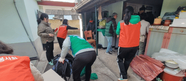 이날 광양시공무원노동조합 및 광양읍, 우리동네복지기동대 10여 명은 쓰레기와 고장난 가구 등을 반출하고 곰팡이로 들뜬 벽지를 제거했다.