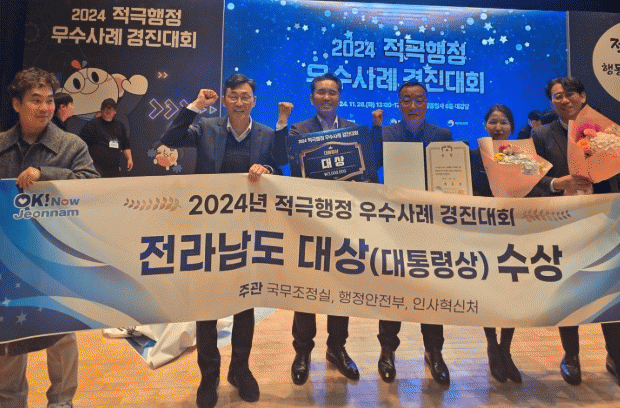 김종기 전남도 자치행정국장은 “적극행정이 전국 모범 사례로 인정받아 매우 뿌듯하다”며 “앞으로도 규제나 관행에 얽매이지 않고 창의적으로 일하는 공직문화를 만들겠다”고 말했다.
