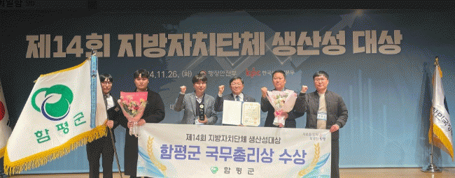 함평군은 ‘지방자치단체 생산성대상’에서 지난해 ‘기량향상 우수’ 지자체로 선정되어 행정안전부장관상을 수상한 바 있으며, 올해는 지표 전 분야에서 고르게 우수한 성적을 거두어 ‘최우수’ 지자체로 선정되고, 국무총리상을 수상하는 쾌거를 이뤘다.