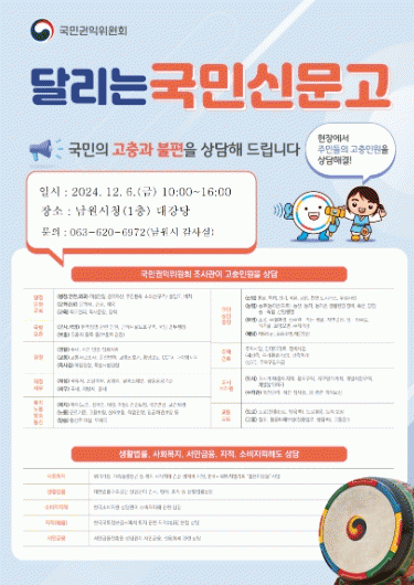 최경식 남원시장은 “평소 고민과 어려움이 있던 시민들이 ‘달리는 국민신문고’를 통해 고충을 해결할 수 있게 되길 바란다,”며 “앞으로도 시민들의 불편을 해소하는 정책을 적극 추진하고, 시민의 목소리에 귀 기울이며 소통을 강화하겠다,”고 말했다.