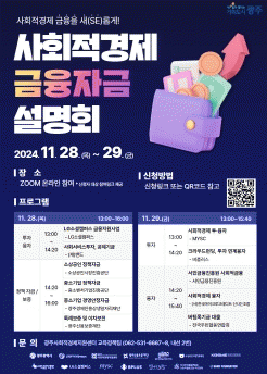 참여를 희망하는 기업은 사전 신청으로 온라인 설명회 접속 링크를 제공받을 수 있다. 자세한 사항은 광주사회적경제지원센터 누리집에서 확인하거나 광주사회적경제지원센터로 문의하면 된다.