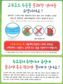 실제로 전주시 상하수도본부가 수돗물을 사용해 만든 김장김치에서 역한 냄새가 난다는 민원에 따라 조사할 경우 대부분의 악취 원인이 고무호스인 것으로 밝혀지기도 했다.