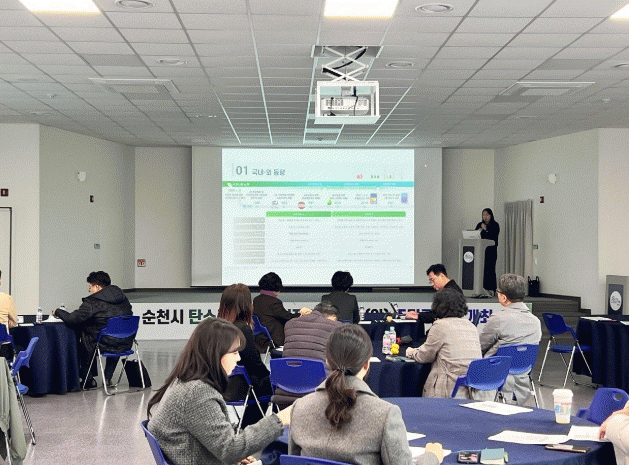 이날 ‘제1차 순천시 탄소중립 녹색성장 기본계획(안)’ 수립 용역 수행을 맡은 지방행정발전연구원에서 도로 수송, 흡수원 등 다양한 부문별 온실가스 감축 방안을 담은 기본계획(안)을 발표했다.