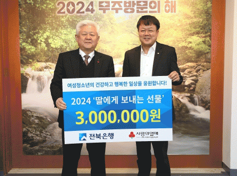 이날 물품 전달을 위해 무주군청을 방문한 전상익 부행장과 김성수 무주지점장은 “지역 대표 은행으로서 항상 지역사회 발전과 이웃들의 행복에 일조하고 싶은 마음”이라며 “물품이 지역 내 저소득 여성 청소년들에게 잘 전달돼서 도움이 되고 또 더 많은 나눔과 기부문화를 확산하는 계기가 되길 바란다”라고 전했다.