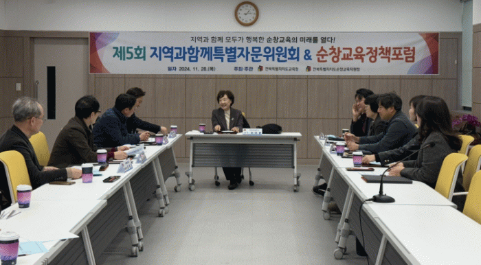 ‘지역과 함께 모두가 행복한 순창교육의 길을 묻다’라는 주제로 열린 순창교육정책포럼에는 특별자문위원회, 학부모회, 학교운영위원회, 교직원, 순창마을교육활성화 추진단 등 60여 명의 교육 주체가 참여해 지역교육 현안을 심도있게 논의했다.