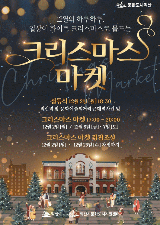 한편 익산 크리스마스 행사와 관련한 보다 자세한 정보는 익산시문화도시지원센터로 문의하거나 익산시문화도시지원센터 누리집과 인스타그램에서 확인하면된다.