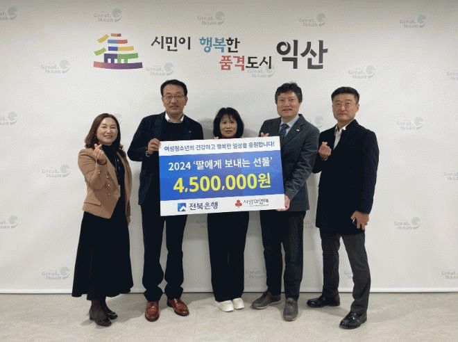 전상익 전북은행 부행장은 "저소득 가정과 복지사각지대 여성청소년의 밝은 미래를 응원하고자 '2024 딸에게 보내는 선물'사업을 준비했다"며 "전북은행은 지속적이고 진정성 있는 사회공헌 활동을 통해 기업의 사회적 책임을 실천하고, 나눔 경영으로 누구에게나 따뜻한 금융 실현을 위해 더욱 노력하겠다"고 말했다.