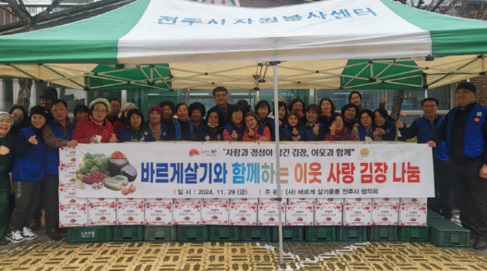 이번 행사는 바르게살기운동 전주시 협의회의 ‘이웃사랑 실천’이라는 가치아래 추진됐으며, 회원들이 직접 김장을 담그고 배달까지 책임지며 지역사회에 따뜻한 온기를 전하는 모습이 돋보였다.