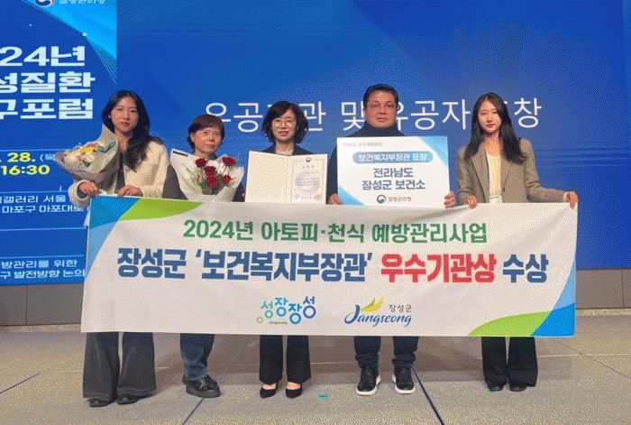 광주‧전남 지자체 가운데 유일하게 수상을 기록한 장성군은 2008년부터 아토피․천식 예방관리사업을 이어오고 있다. △아토피․천식 안심학교 운영 △취약주민 보습제 지원 △지역사회교육 및 프로그램 진행 등을 통해 건강한 환경 조성을 위해 지속적인 노력을 기울여 왔다.