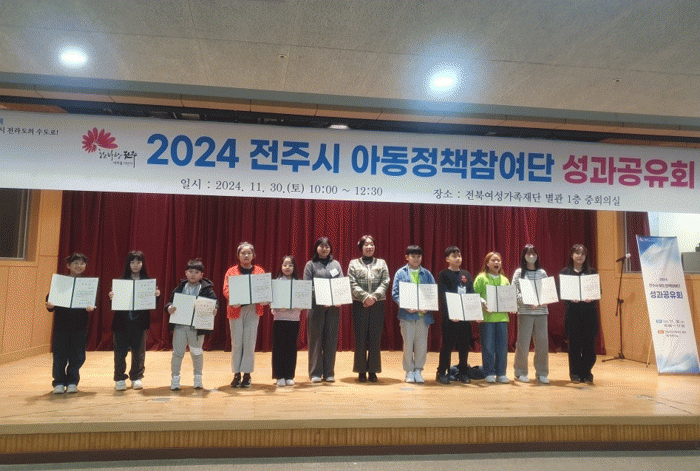 전주시는 30일 전북여성가족재단에서 ‘2024년 전주시 아동 정책참여단 성과공유회’를 개최했다.