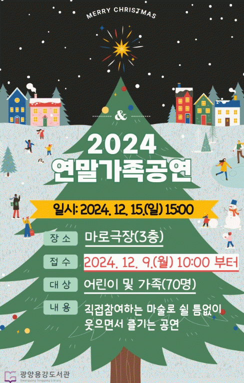 김미라 도서관과장은 “이번 공연은 어린이들이 꿈과 상상력을 한껏 키울 수 있는 좋은 기회다. 연말에 온 가족이 도서관에서 즐거운 추억을 만들기를 바란다”고 전했다.