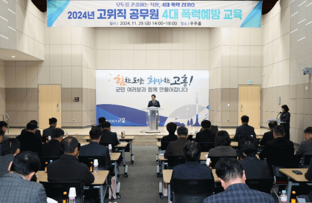 한편, 고흥군은 지난 4월 전 직원을 대상으로 직장 내 4대 폭력 예방을 위한 대면 교육을 실시했으며, 마을 이장 등 지도자를 대상으로 전체 읍면에 찾아가는 폭력 예방 교육을 진행해 폭력 없는 안전한 군을 만들기 위해 앞장서고 있다.
