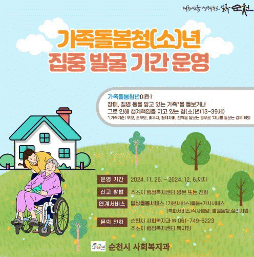 시는 집중발굴을 위해 순천시에서 운영하는 블로그 등 각종 SNS와 버스정보시스템 및 읍면동 복지센터를 통해 홍보하고 발굴할 계획이다.