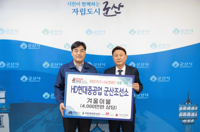 강임준 군산시장은“해마다 따뜻한 나눔의 손길로 지역사회 공헌 활동에 이바지하시는 HD현대중공업 군산조선소 깊은 감사를 드린다.”라며 “기탁 해주신 성품은 혹한기 어려운 이웃에게 소중히 전달하도록 하겠다.”라고 전했다.