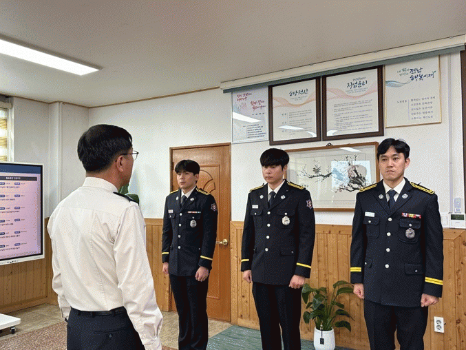 임용 대상자는 소방장에서 소방위으로 승진한 정동규, 소방교에서 소방장으로 승진한 김재민, 소방사에서 소방교로 승진한 김송섭 소방관 3명이다.