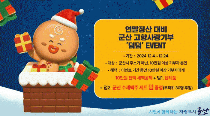 시 관계자는 “이번 이벤트를 통해 고향사랑기부제를 홍보하는 계기가 되고, 군산만의 특색있는 답례품도 널리 알려 지역경제에 도움이 되길 바란다.”라고 말했다.