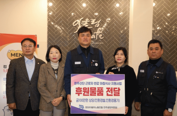 이날 전달식에는 완주군의회 김재천 부의장을 비롯해 현대차완주공장노동조합 전주공장위원회 김정철 의장, 이상근 부위원장, 노조 관계자 등 10여 명이 참석했다.