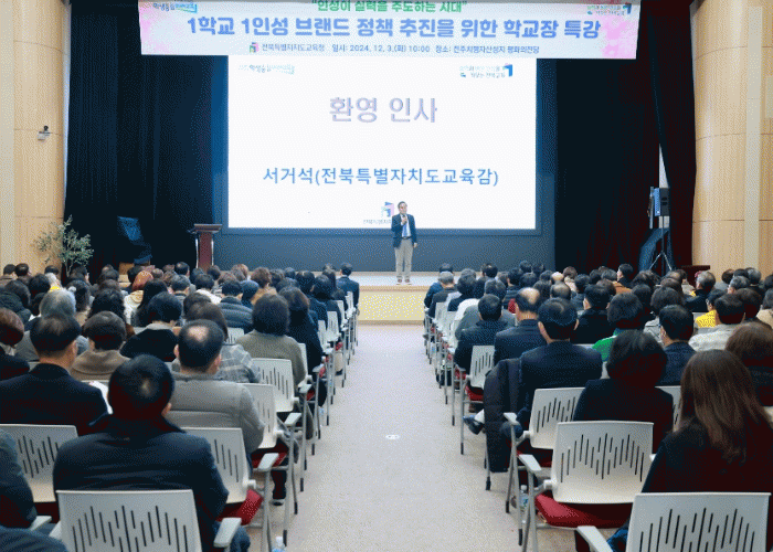 도내 초·중·고·특수학교장 350여 명을 대상으로 한 이 특강은 교육과정 중심의 인성교육 운영을 강화하고 ‘더 특별한 전북 인성교육’ 실현 방안 모색을 목적으로 개최됐다.