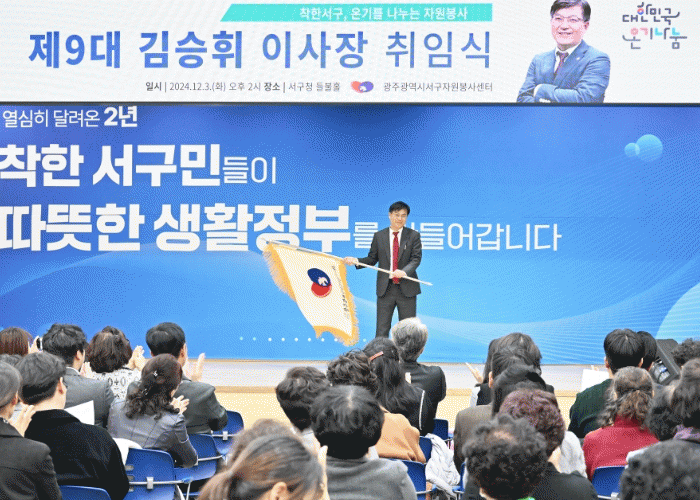 자원봉사자의 날(12.5.)을 기념해 열린 이번 행사는 자원봉사자와 관계자 150여 명이 참석한 가운데 김승휘 이사장 취임식과 함께 자원봉사 유공자 표창 순으로 진행됐다.