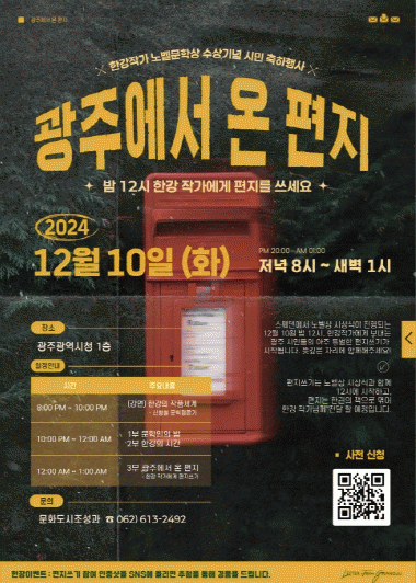 한강 작가에게 보내는 광주시민들의 아주 특별한 편지쓰기는 노벨상 시상식과 함께 11일 자정(12시)에 시작된다.