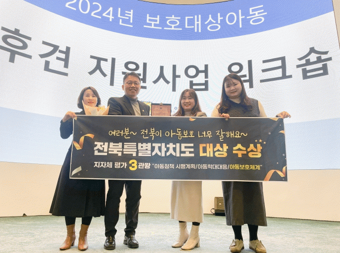 전북특별자치도 관계자는 “올해 아동정책 분야에서 3관왕(△아동보호체계: 대상 △아동학대 대응평가: 최우수상 △아동정책 시행계획: 우수상)의 쾌거를 이뤘고 이는 보호대상아동이 안전하고 건강하게 성장할 수 있도록 보호서비스의 질을 높이고, 대응인력의 역량강화를 위해 힘쓴 결과다”며, “앞으로도 아이들이 행복한 전북특별자치도 만들기 위해 아동의 이익이 최우선 될 수 있도록 최선을 다하겠다”고 강조했다.
