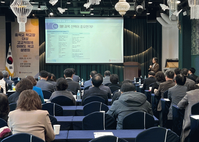 전북교육청은 이날 △고교학점제 운영 중점사항 △2022 개정 교육과정 고등학교 주요사항 △2028 대학입시제도 개편안 등 고교학점제 도입에 따른 고등학교 생활의 변화를 구체적으로 안내했다.