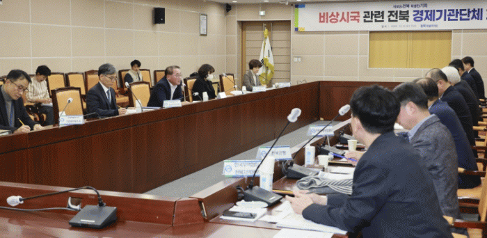 김종훈 경제부지사는 4일 도청 종합상황실에서 한국은행전북본부, 전주상공회의소, 금융감독원 전북지원, 한국무역협회 전북지역본부, 전북은행, 전북경제통상진흥원, 전북신용보증재단, 전북테크노파크 등 도내 경제 기관단체 회의를 긴급 소집하고 전북 민생경제에 미칠 수 있는 영향과 대응방안 등을 논의했다.