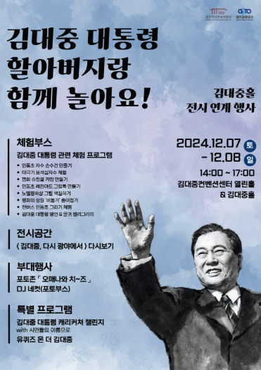 김대중홀 전시와 연계한 이번 행사는 다양한 체험프로그램부터 전시·포토존·퀴즈이벤트까지 한 곳에서 고 김대중 대통령의 삶과 업적을 체험해 볼 수 있도록 구성했다.