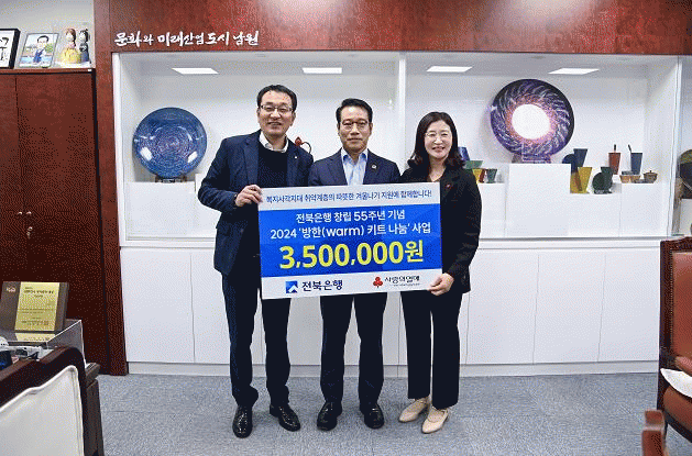 이에 최경식 남원시장은 “전북은행의 따뜻한 기부에 진심으로 감사드린다”라며, “이번 기부가 지역 내 저소득층 여성청소년들과 한파 취약계층에게 실질적인 도움이 될 뿐만 아니라, 어려운 환경 속에서도 희망을 잃지 않는 힘이 될 것”이라고 강조했다.