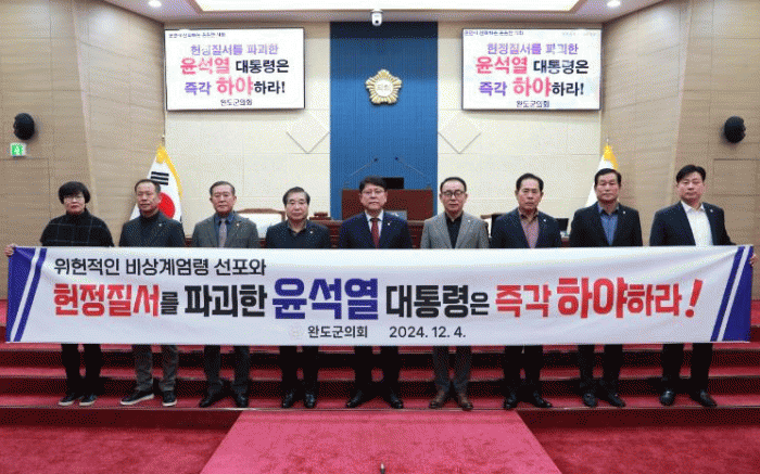 이에 완도군의회는 성명서를 통해 헌법과 민주주의를 훼손한 이번 사태에 대해 다음과 같은 입장을 강력히 밝혔다.