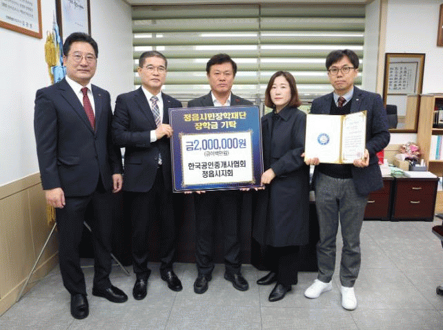 시민장학재단에 따르면 지난 5일, ㈜소프트아쿠아 장희정 대표가 300만원, 한국공인중개사협회 정읍시지회가 200만원, 근로복지공단 정읍어린이집이 100만원, ㈜대한고속이 300만원을 기탁했다.