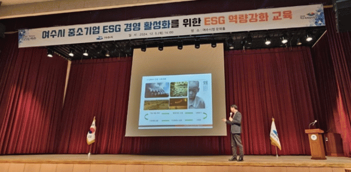 이번 교육은 환경, 사회, 지배구조를 뜻하는 ESG를 이해하고, 중소기업과 공공기관의 ESG 경영 도입 및 활성화를 목적으로 실시됐다.