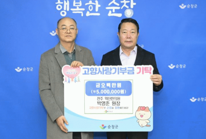 이날 박영준 원장은“고향 순창의 발전에 조금이나마 보탬이 되길 바라는 마음으로 기부에 동참했다”면서“앞으로도 순창군과 지역 주민들에게 긍정적인 영향을 미칠 수 있도록 노력하겠다”고 전했다.