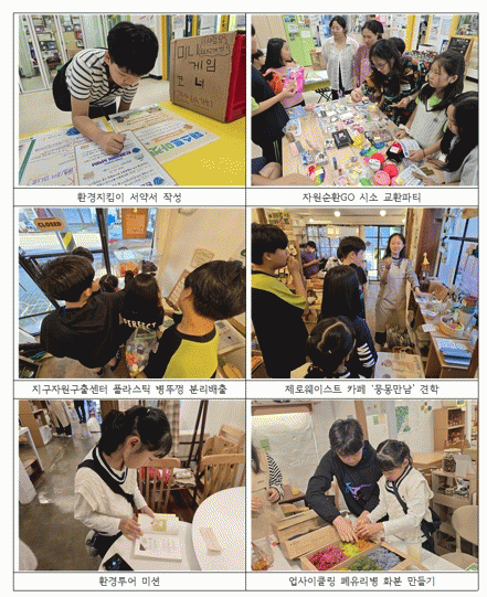 청소년들은 제로웨이스트 카페 ‘뭉몽만남’을 견학했다. 이곳에서 일회용품 없이 운영되는 카페의 실제 모습을 관찰하고, 폐 유리병을 재활용 해 공기정화 화분을 만드는 체험을 진행했다. 또한, 모아온 플라스틱 병뚜껑 자원을 분리배출하며 정확한 분리배출 방법을 배우는 시간이었다. 환경 미션을 통해 학습한 내용을 종합하여, 제로웨이스트 카페에서 환경 보호의 중요성을 다시 한번 느꼈다.