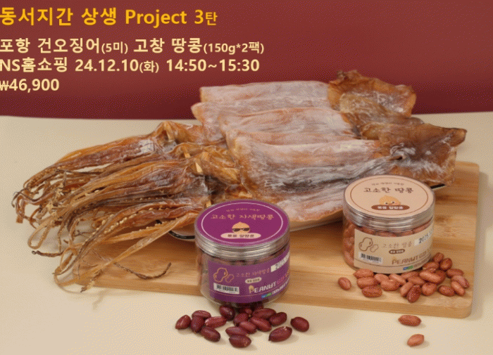 이번 홈쇼핑 방송에서는 고창 볶음땅콩 300g(일반,자색)과 건오징어 5미로 구성된 특산물 세트로 1세트에 4만6900원에 판매된다.