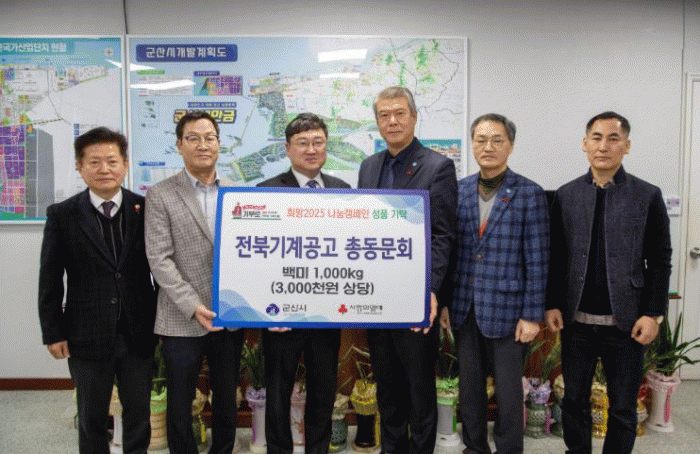 신원식 군산시 부시장은 “우리시의 어려운 이웃을 생각하는 마음으로 기탁해 주신 국립전북기계공고 동문회에 깊이 감사드리며, 여러분의 따뜻한 마음이 잘 전달될 수 있도록 하겠다.”라고 전했다.