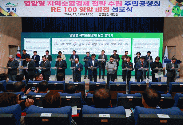 나아가 공청회 참여 39개 지역 앵커기관·기업 등은 ‘영암형 지역순환경제 실천 협약’을 맺고, 그 의지의 표명으로 퍼포먼스에도 나섰다.