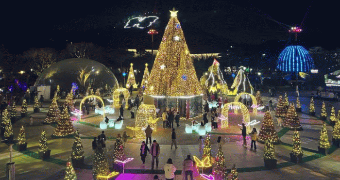 대형 크리스마스트리와 다채로운 경관 조명이 함께 어우러진 빛과 예술의 아트공간을 제공한다.