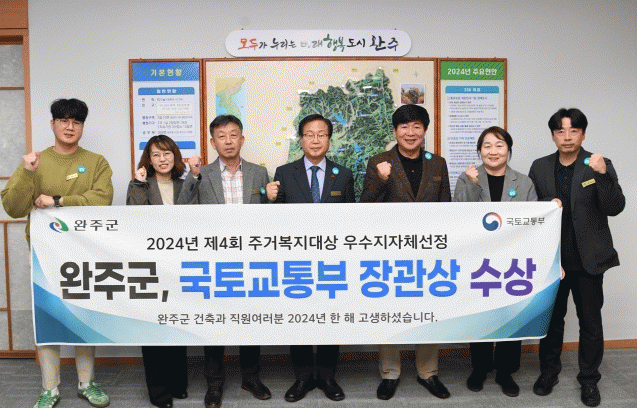이번 수상으로 완주군은 지난 2022년 국토교통부 제2회 주거복지대상 '우수 지자체', 2024년 주거복지문화운동본부 제7회 대한민국 주거복지문화대상 ‘종합대상’에 이어 주거복지 부문 연속 수상을 이어가게 됐다.