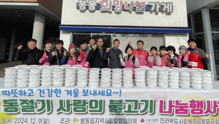 김의철 봉동읍장은 “연중으로 관내 취약계층의 삶의 질 향상을 위해 발벗고 뛰어주시는 위원님들께 마음 깊이 감사한 마음을 전한다”며 “앞으로도 모두가 살기 좋은 따뜻한 봉동을 만들기 위해 어려움을 겪는 위기가구 발굴과 지원에 총력을 다하겠다”고 밝혔다.
