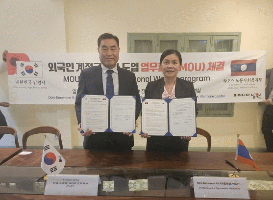이번 라오스와 MOU 체결은 2023년에 이어 2번째로 라오스 루앙프라방주 남박군과 외국인 계절근로자 도입을 위해 진행됐으며, 라오스 노동사회복지부 고용부의 아누손 캄싱사왓 국장, 남원시 농정과장, 남원시조합공동사업법인 백남정 대표 등 관계자가 참석했다.