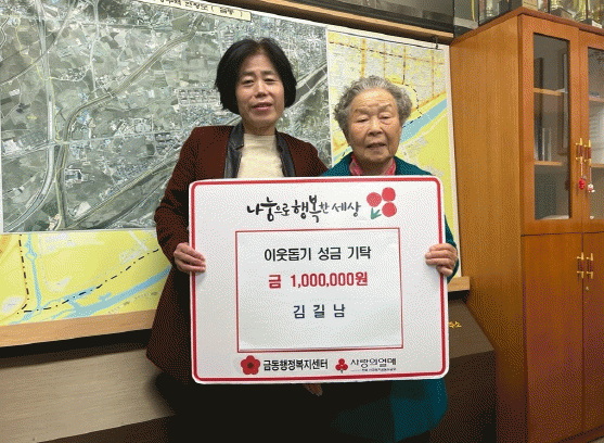 노환순 금동장은 “넉넉지 않은 형편에도 이웃을 생각하며 뜻깊은 나눔을 실천해 주셔서 감사드리며, 많은 시민이 어르신의 선한 영향력에 힘입어 나눔에 동참해 주기를 바란다”고 전했다.